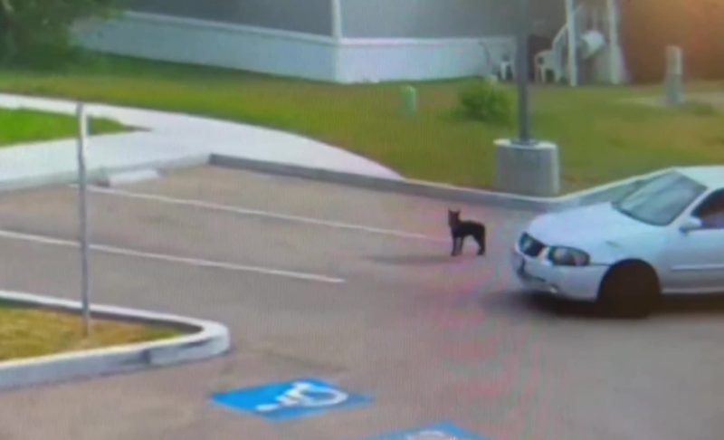 Surveillance video shows the puppy running, desperately trying to catch up to the vehicle after being abandoned.