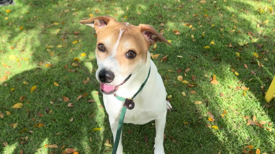 Olympus is a 40-lb terrier mix and can be found an the Kosasa Family Campus at Hoopili.
