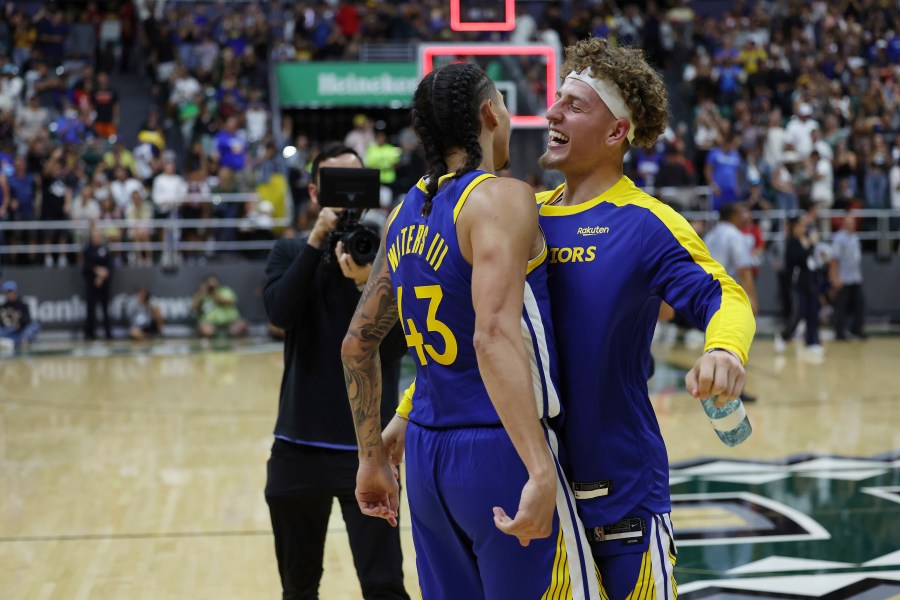 A Lindy Waters III 3-pointer at the buzzer lifted the Golden State Warriors to a 91-90 win over the Los Angeles Clippers at a sold-out Stan Sheriff Center in Manoa on Saturday.