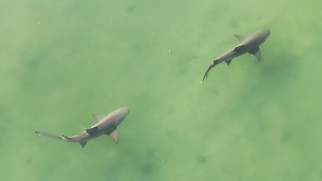 It’s difficult to identify the sharks from above, but they appear to be Caribbean reef sharks, which are abundant throughout the Gulf and Caribbean Sea.